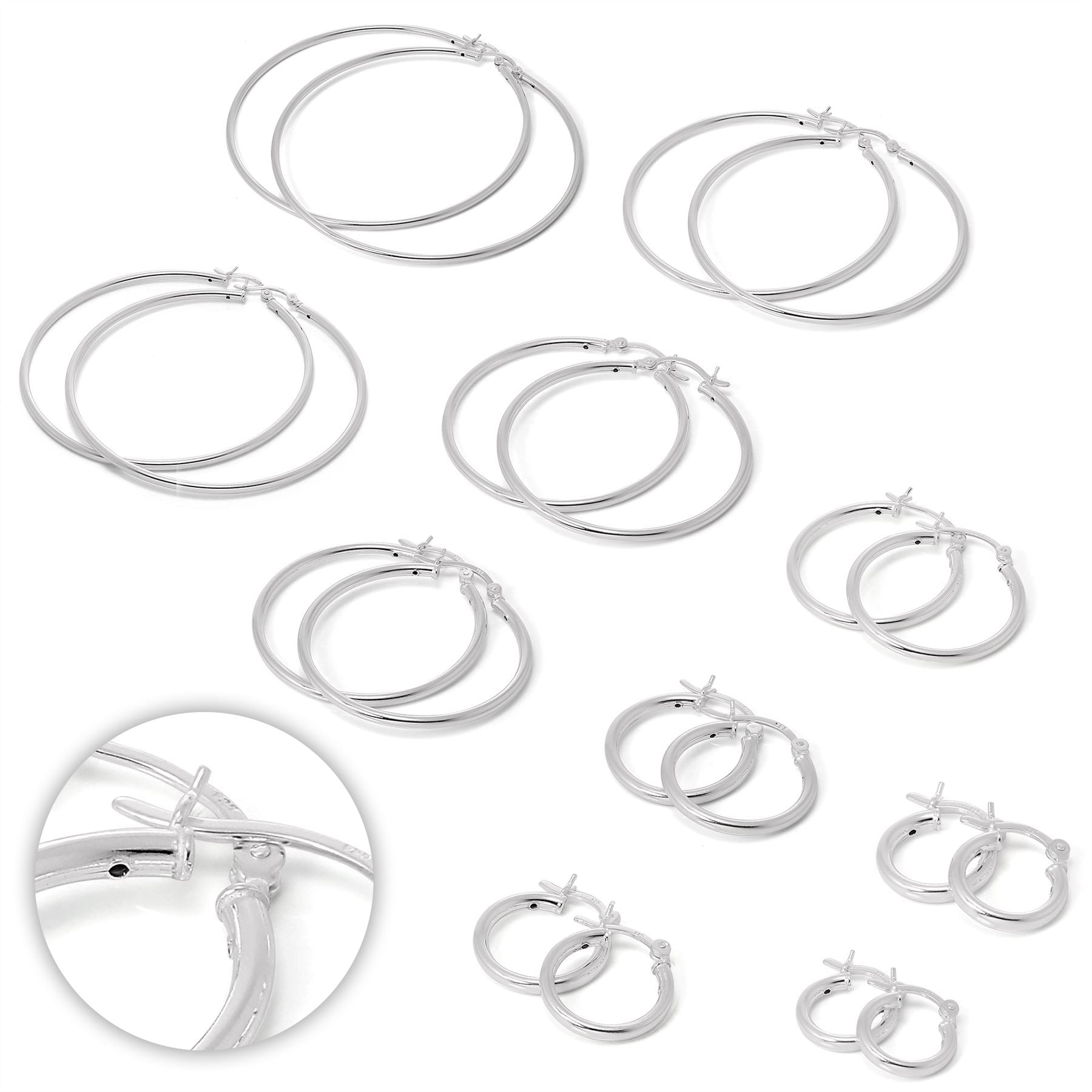Boucles d'oreilles créoles en argent sterling de 2 mm (12 mm à 70 mm)
