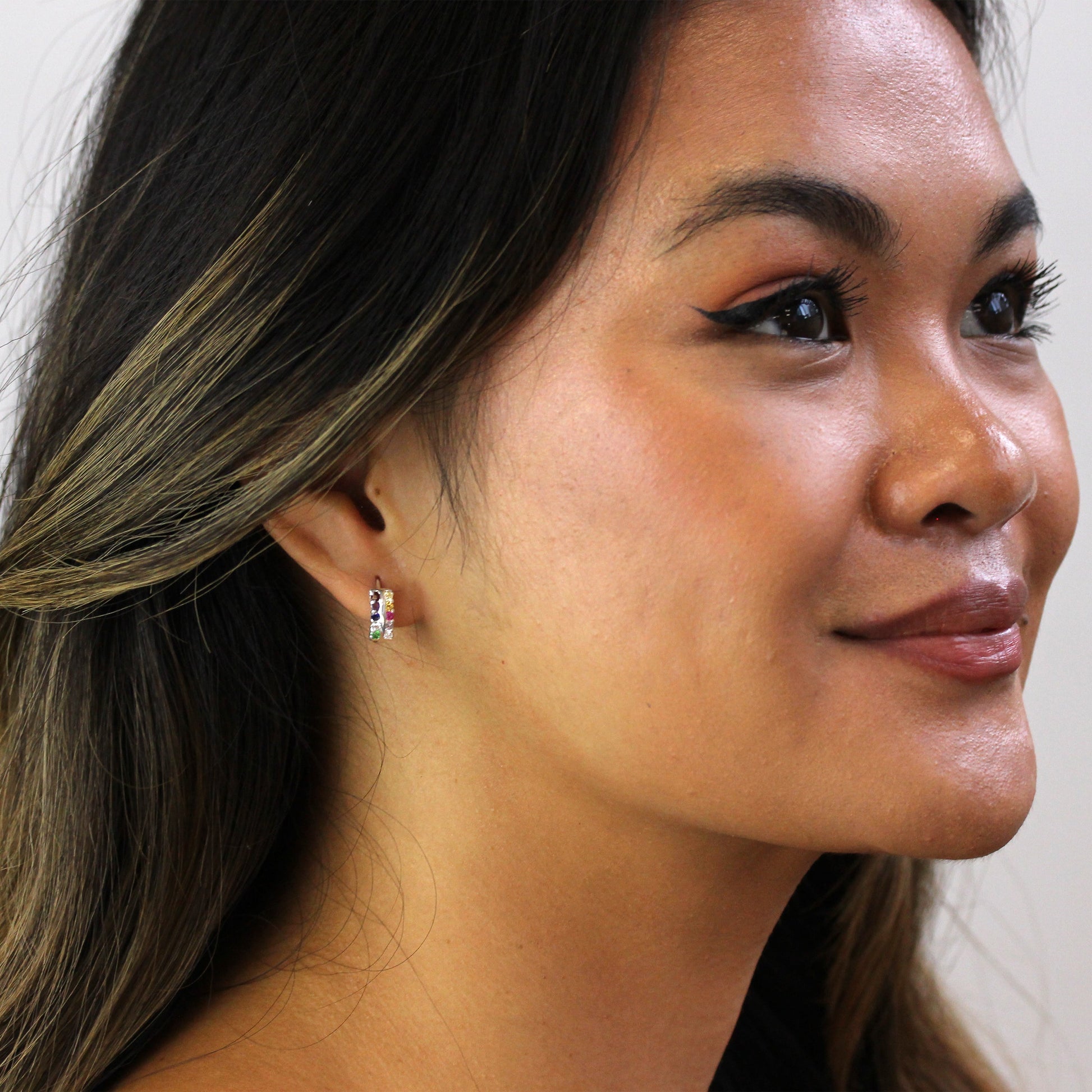 Boucles d'oreilles créoles en argent sterling avec zircones cubiques arc-en-ciel de 13 mm