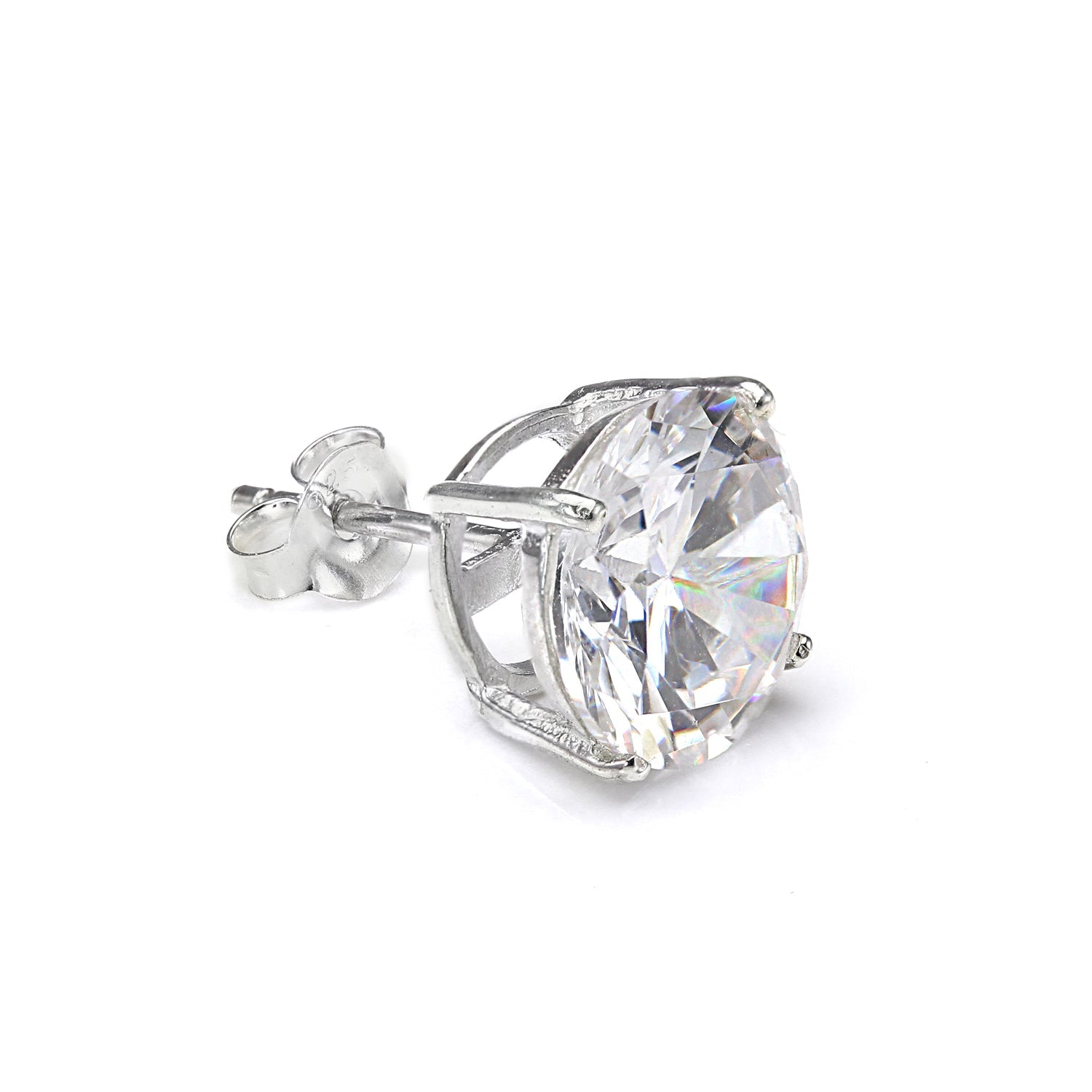 Clou d'oreille simple en argent sterling avec zircone cubique rond pour homme (4 à 10 mm)