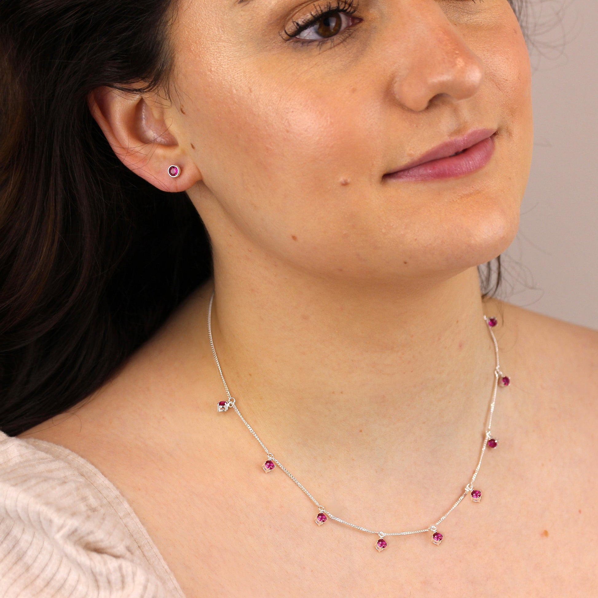 Boucles d'oreilles à tige en argent sterling avec rubis et zircone cubique de juillet sur 4 mm