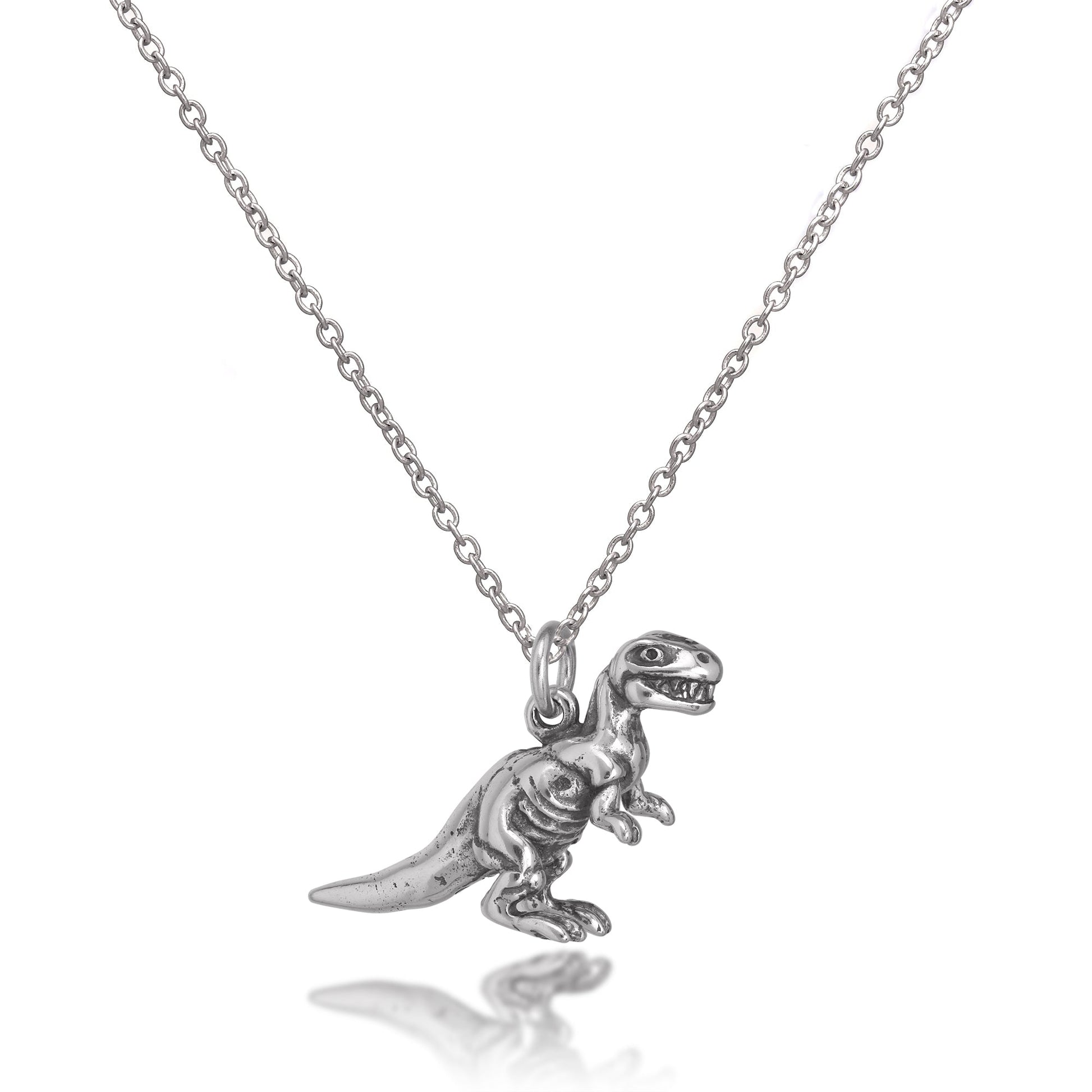 Collier en argent sterling massif représentant un dinosaure Tyrannosaurus Rex