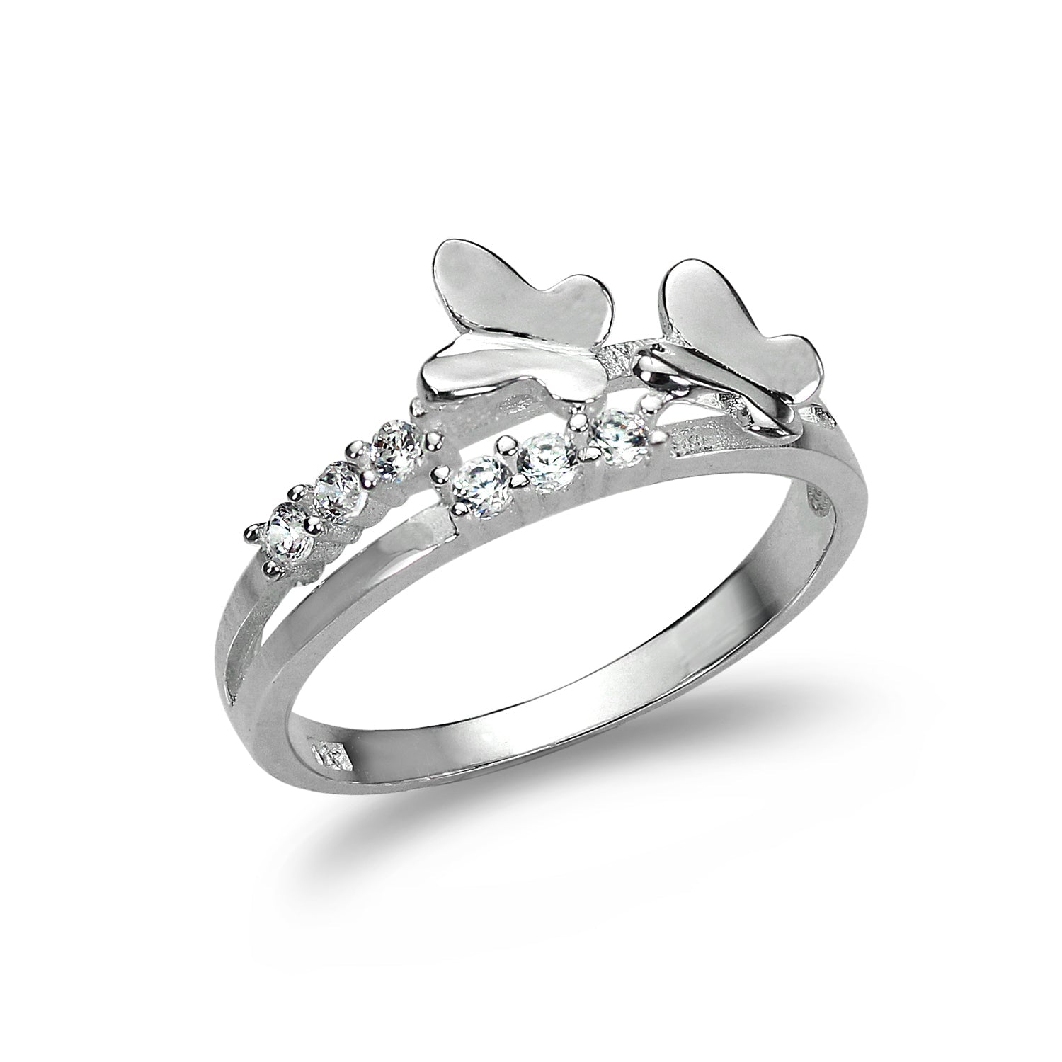 Bague en argent sterling avec cristal CZ et papillons - Taille JW