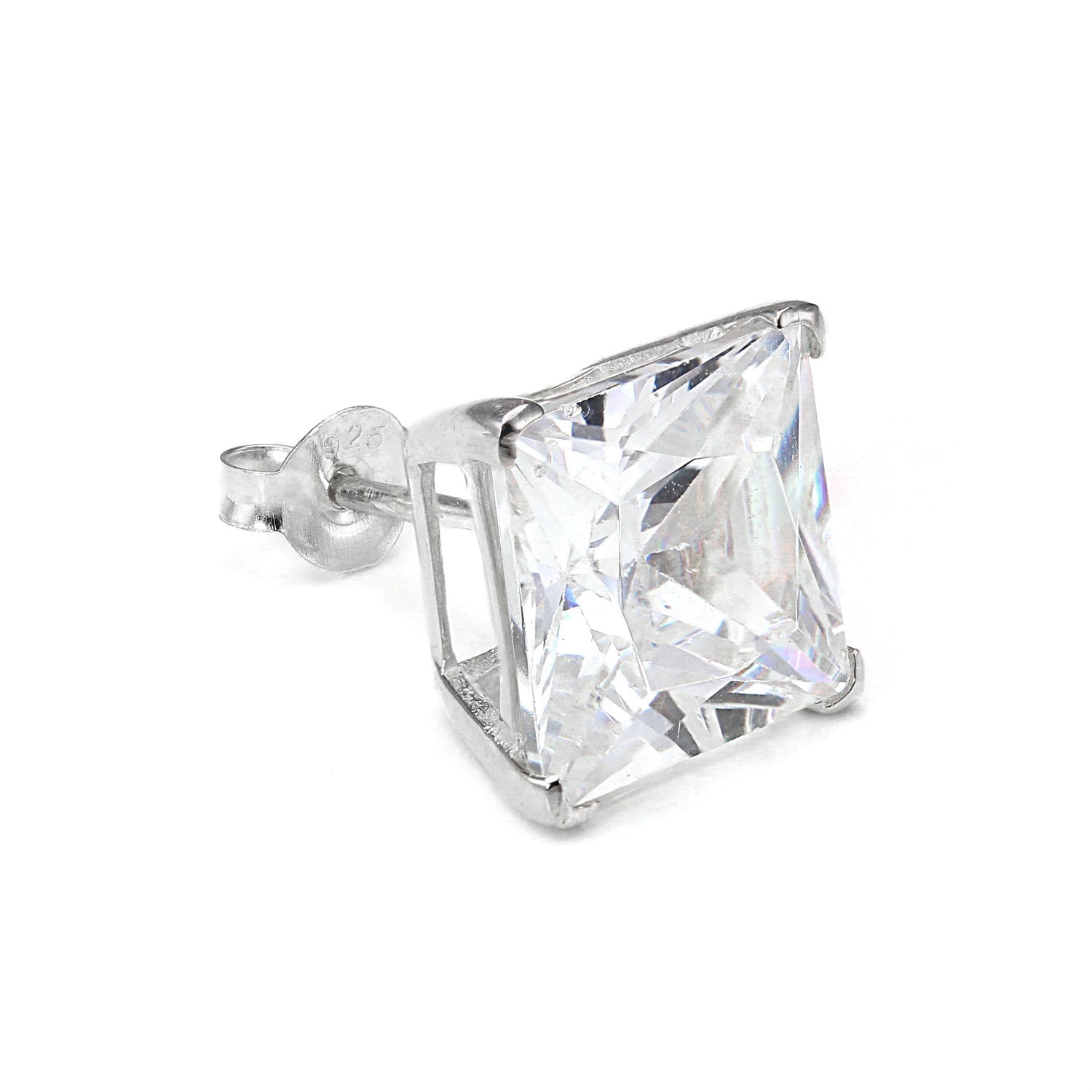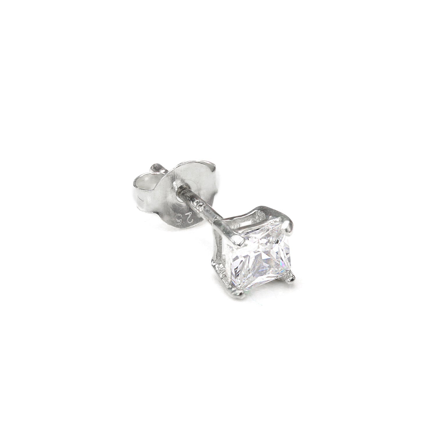 Clou d'oreille simple en argent sterling avec cristaux CZ carrés pour homme - 4-10 mm