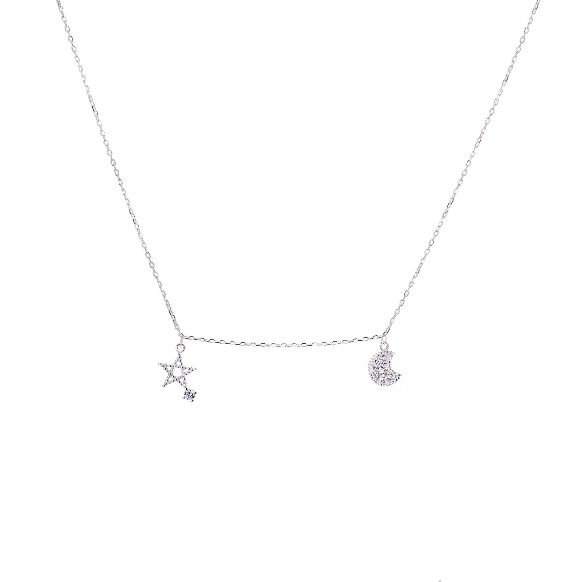 Collier étoile et lune en argent sterling avec zircones cubiques transparents