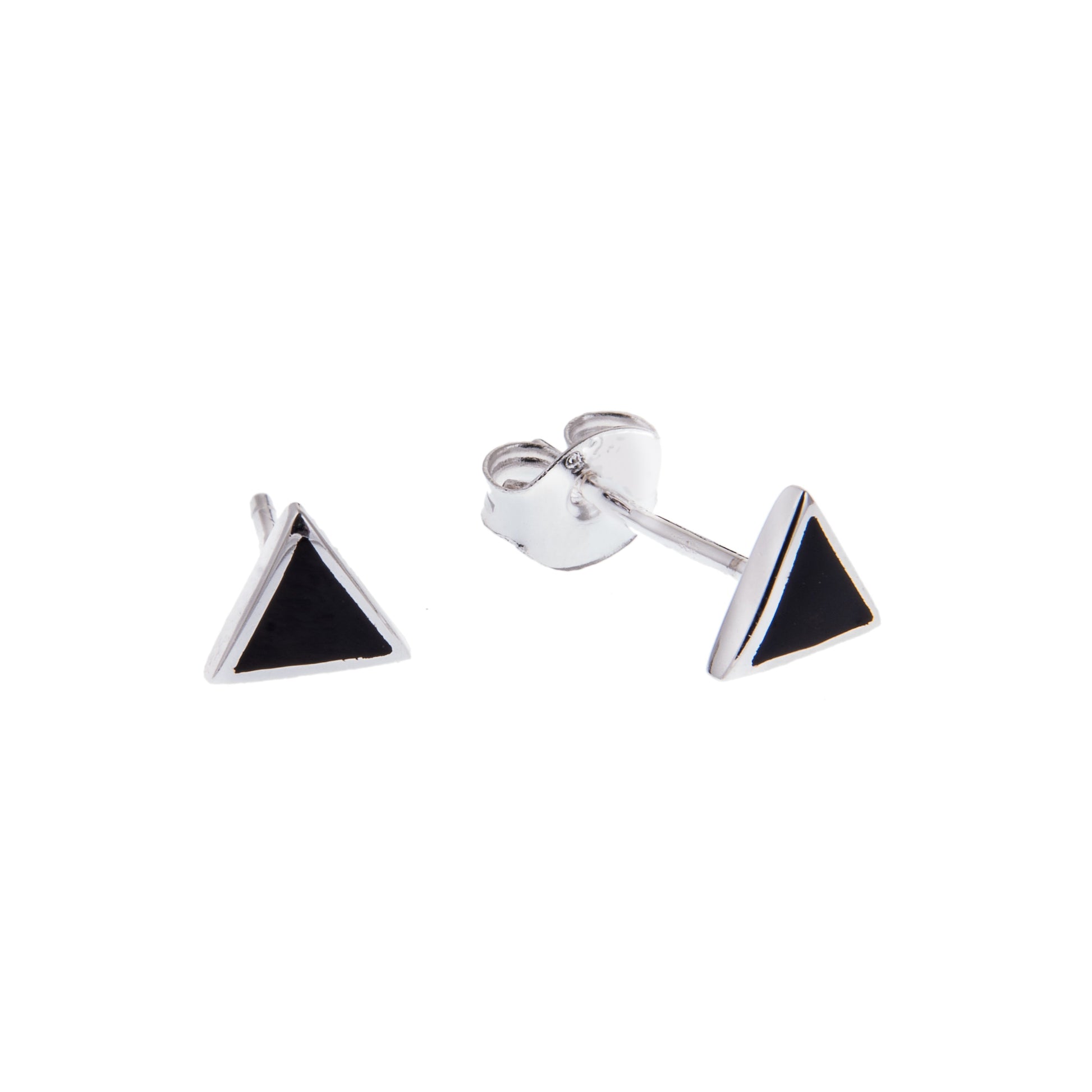 Boucles d'oreilles à tige minimalistes en argent sterling et émail noir triangulaire