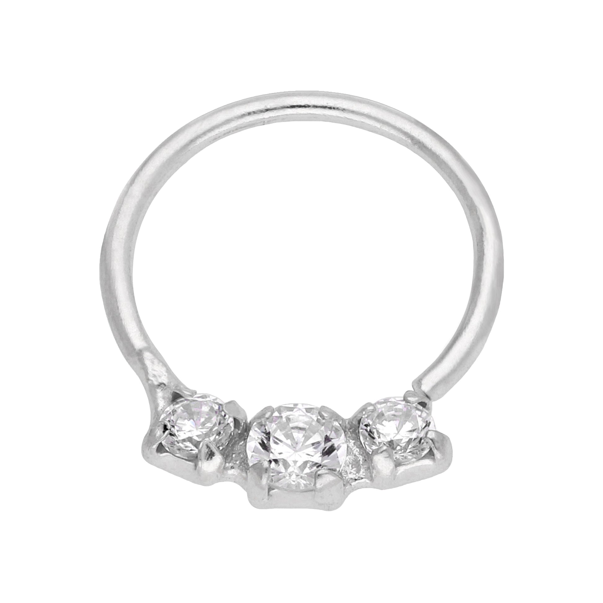Anneau de nez triple en argent sterling avec zircones cubiques de 2 mm et 7 mm, calibre 22