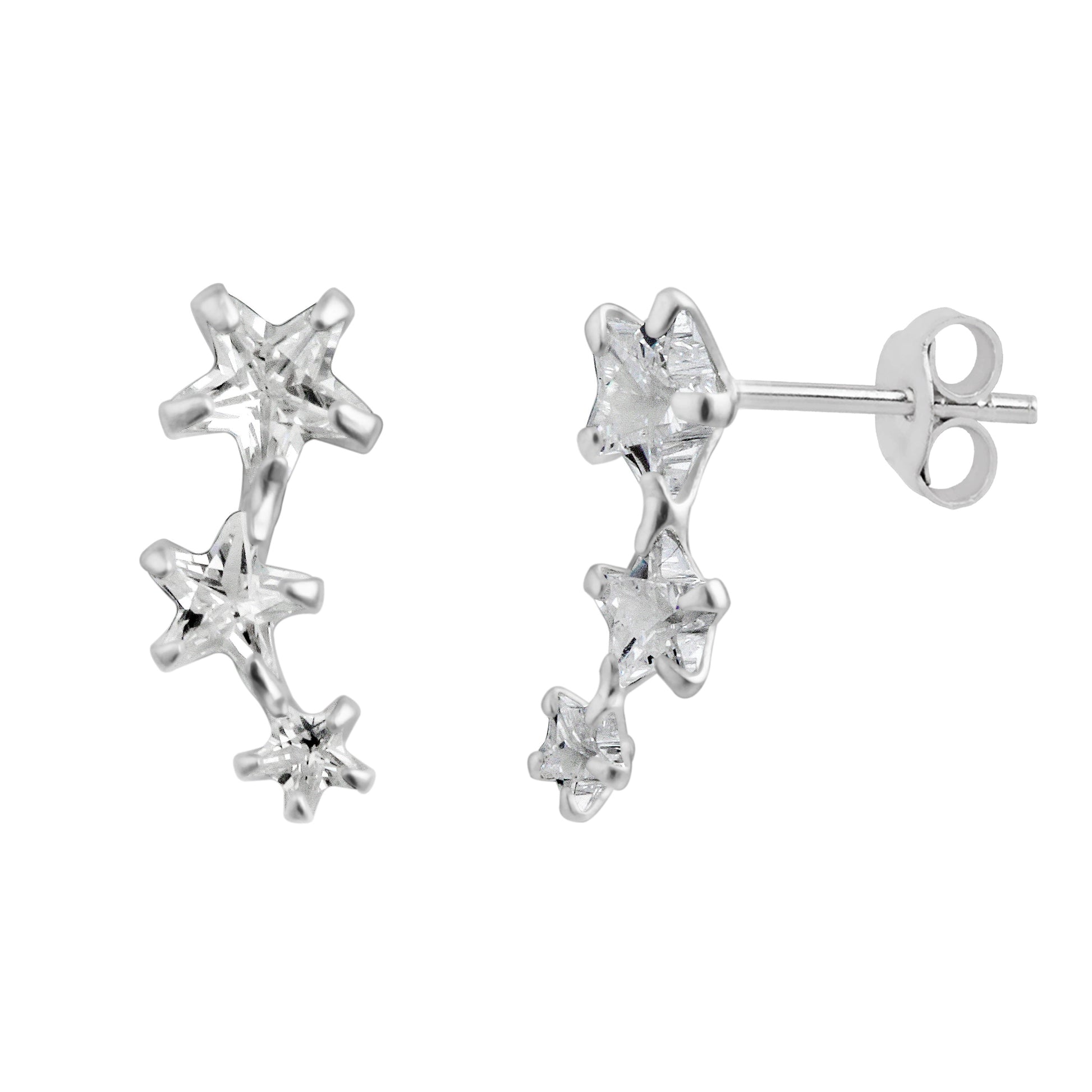 Boucles d'oreilles à tige en argent sterling avec triple étoile transparente en oxyde de zirconium