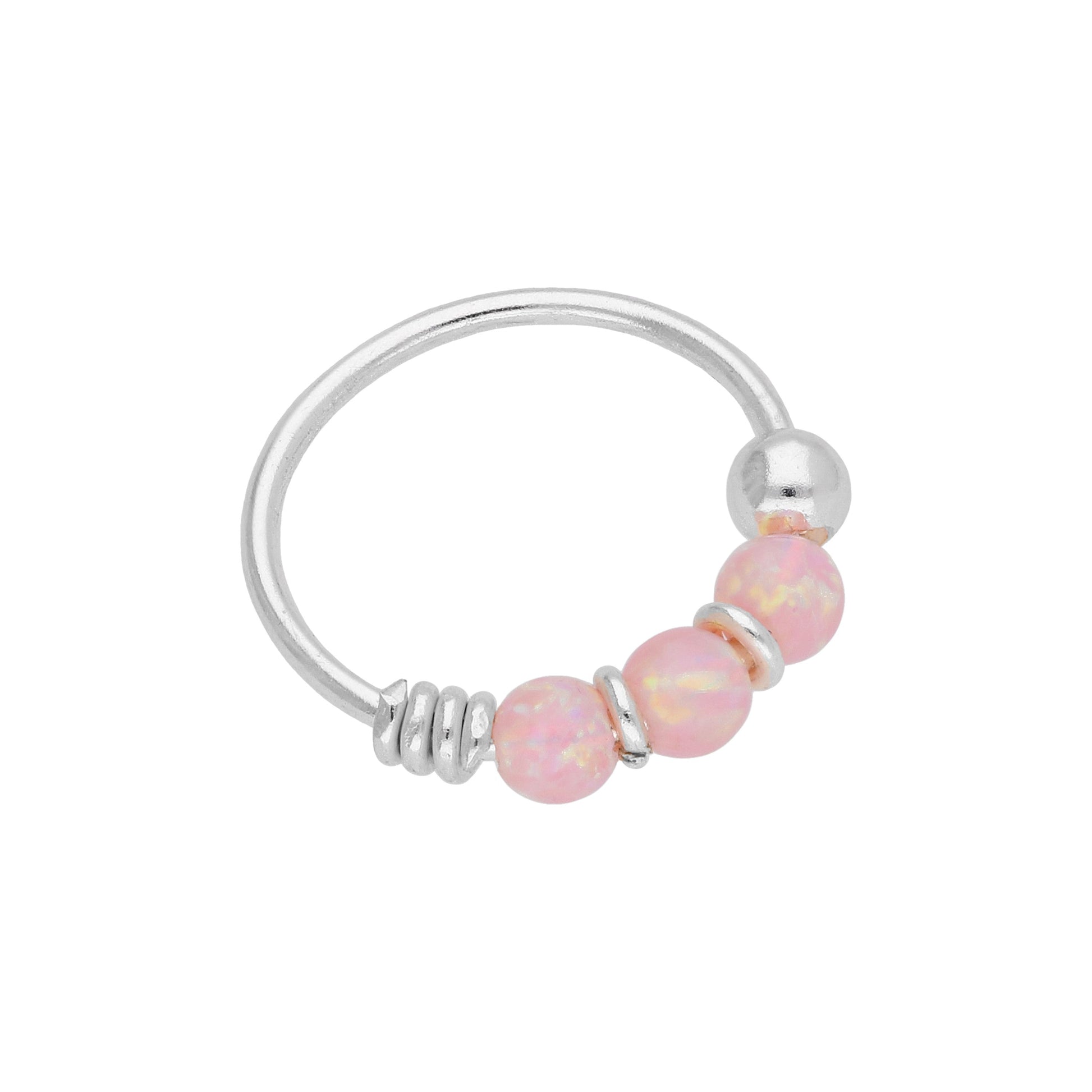 Anneau de nez en argent sterling avec triple perle d'opale rose de 10 mm, calibre 23