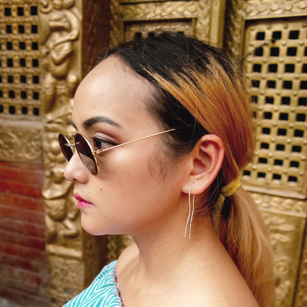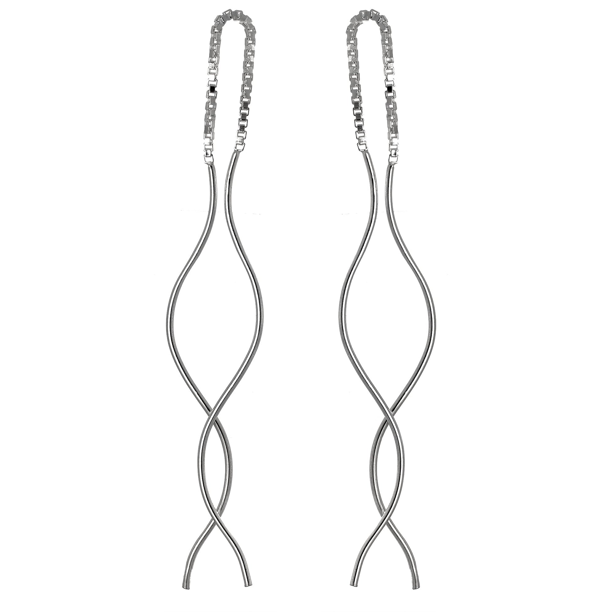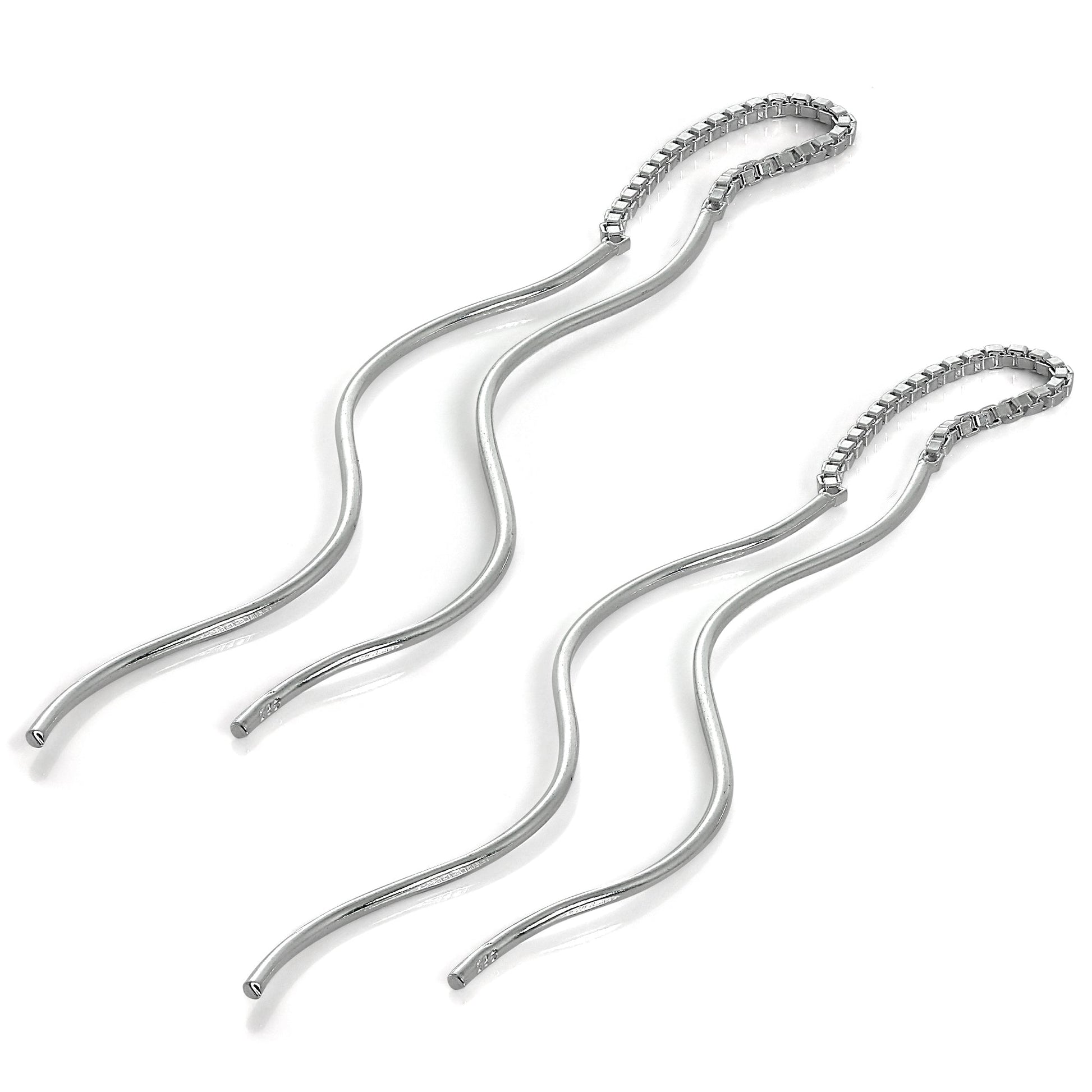 Boucles d'oreilles longues pendantes en argent sterling avec barre ondulée