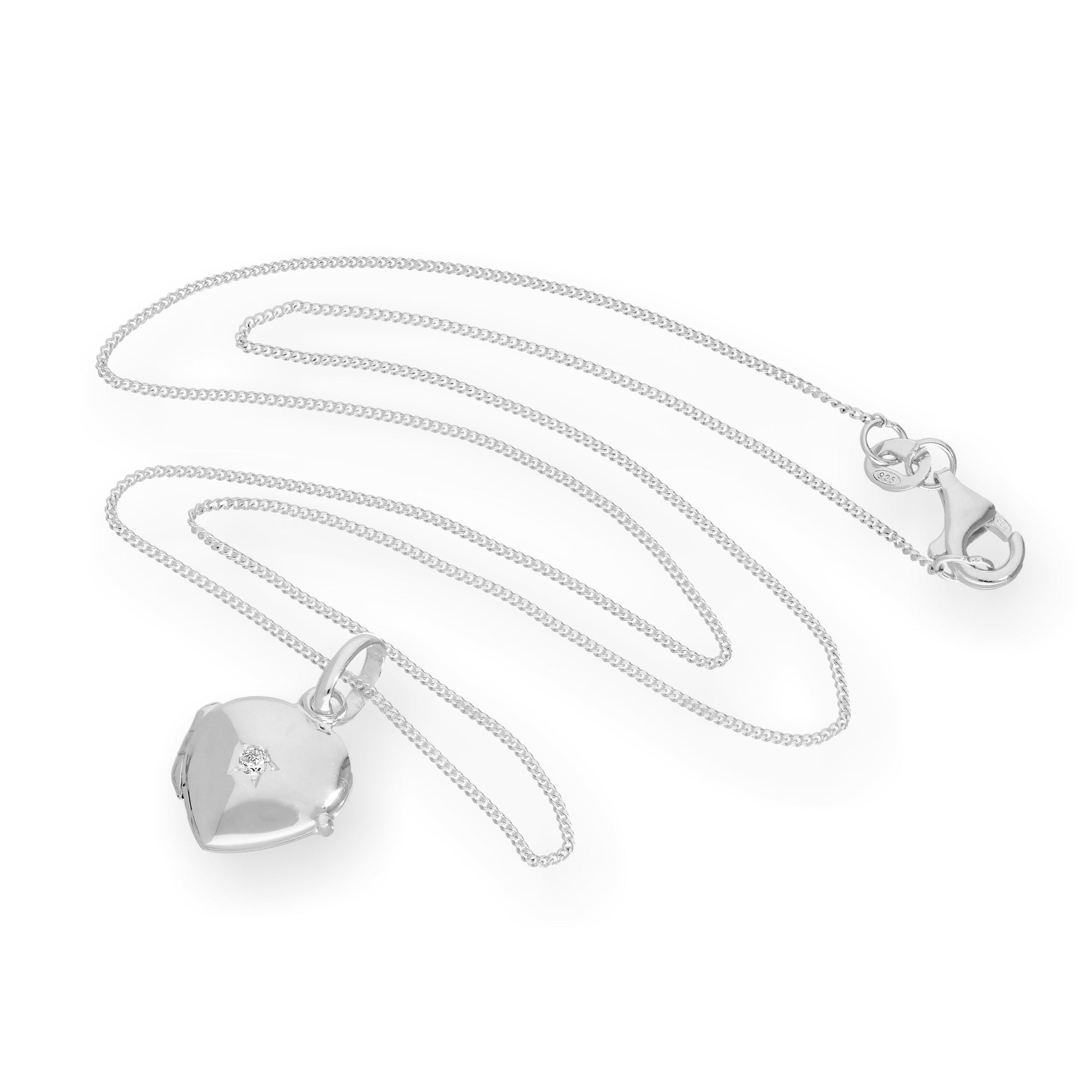 Petit médaillon en forme de cœur gravé en argent sterling et cristal CZ sur chaîne de 40 à 55 cm