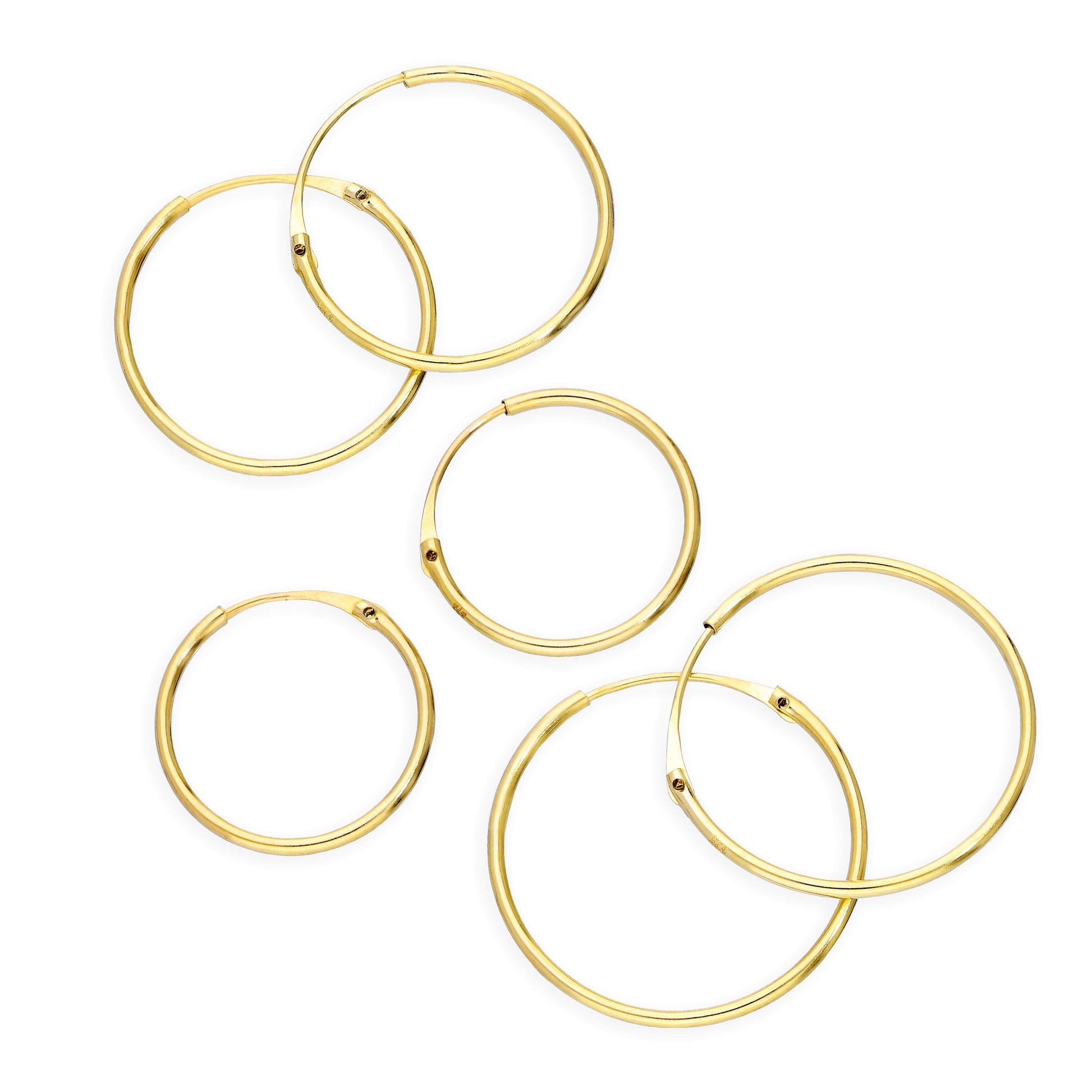 Ensemble de boucles d'oreilles créoles triples en or 9 carats de 0,8 mm, 12, 14 et 16 mm